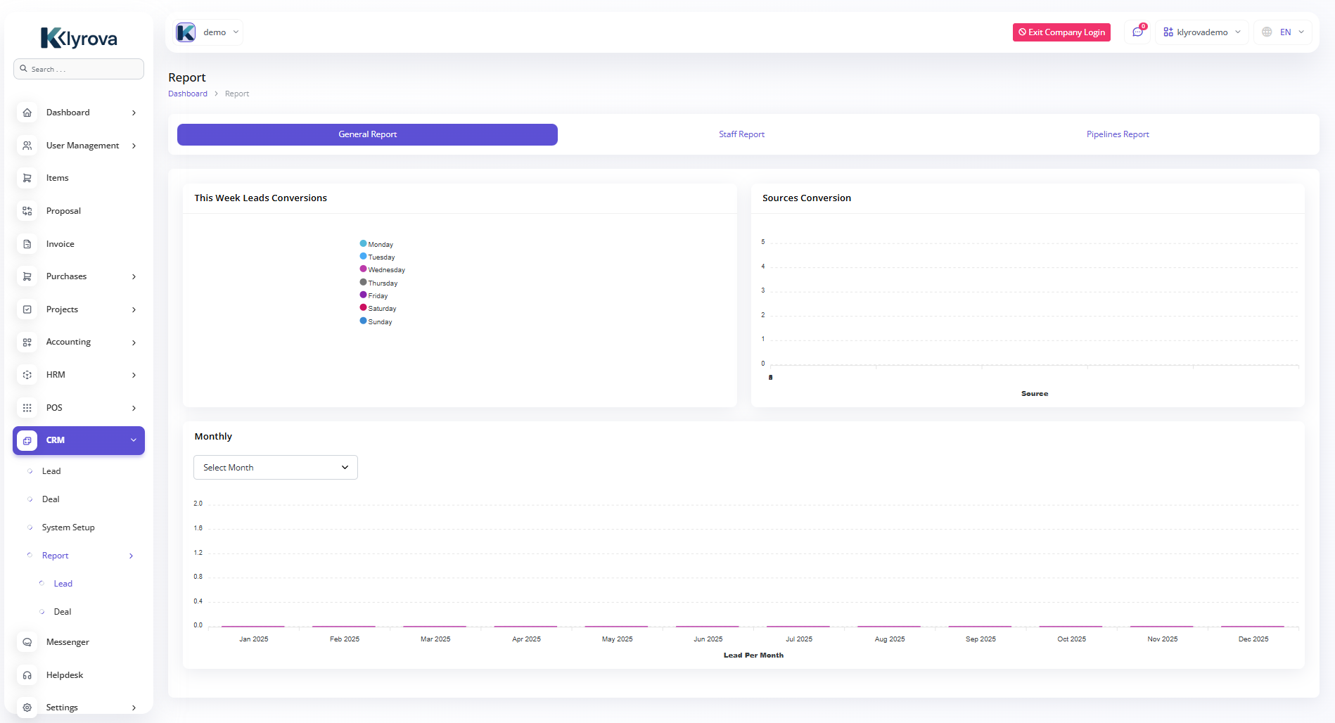 With Klyrova, you can conveniently manage all your business functions from a single location.